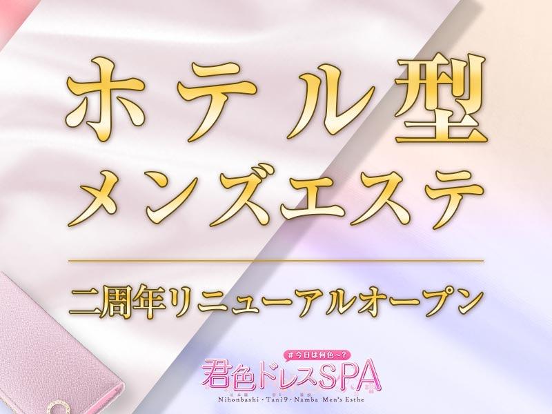 📢✨OPEN ・4周年記念(11/1)リニューアルOPEN!!✨ 2026/04/20 日頃より当店をご愛顧頂きまして誠にありがとうございます。お知らせが御座います。この度11月1日より君色ドレスSPAは規模拡大の為、マンションルーム型からホテル型へとリニューアルすることとなりました。今後も皆様に安心・安全にご利用頂くための処置となります。ご利用頂いている皆さまには、案内方法やシステムが変更されてお手数をおかけいたしますが、大変申し訳ございません。しかし今まで以上にご満足して頂けるようにお店として精進してまいりますので今後も変わらぬご愛顧賜りますようよろしくお願い申し上げます。【大阪 日本橋 メンズエステ 君色ドレスSPA】